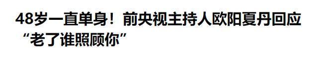 对于她的现状,你有什么看法呢?欢迎在评论区留言讨论。 参考资料: 大皖新闻《48岁一直单身!前央视主持人欧阳夏丹回应“老了谁照顾你”》